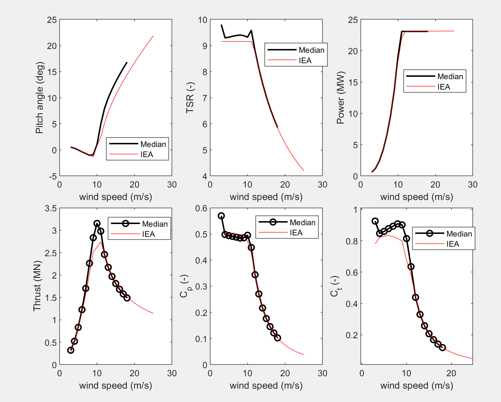 I’m attempting to reproduce the steady-state rotor aerodynamic performance values reported on page 23 of “Definition of the IEA Wind 22-Megawatt Offshore Reference Wind Turbine.” The goal is to confirm my model before using it in my master’s thesis by matching the reported values once steady state is reached.