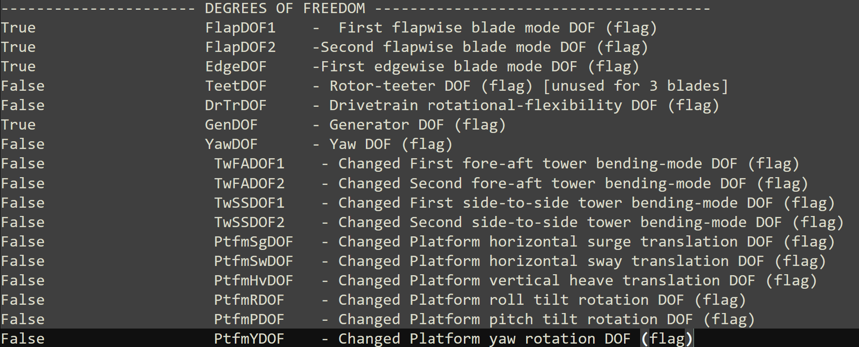 I also wanted to confirm the setup: should all ElastoDyn DoFs—including drivetrain/tower DoFs and platform DoFs—be enabled during the steady-state simulations used to produce the performance curves? Below are the settings I used.