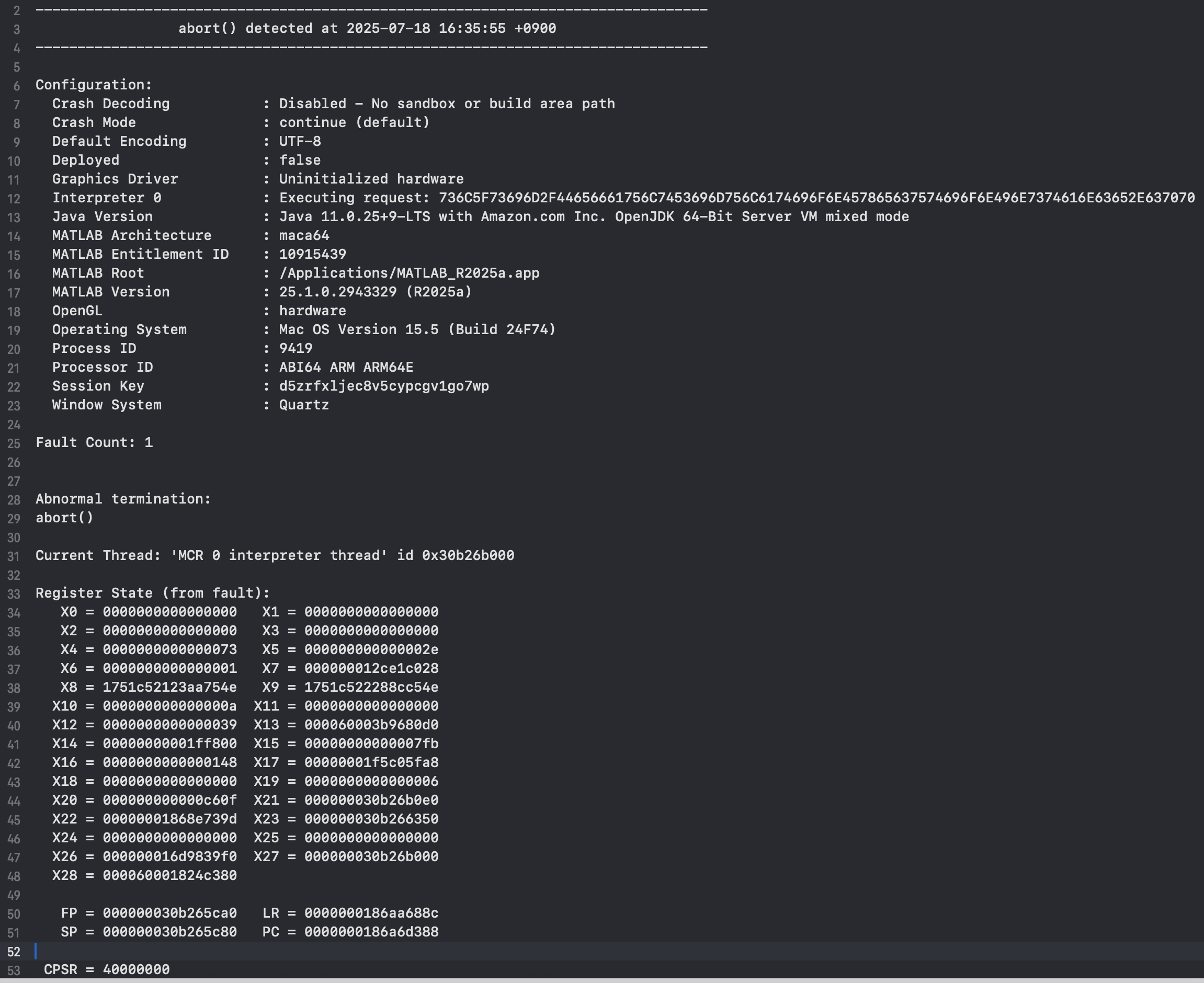 But, every time I ran the Simulink, the mooring line initialization would give the wrong coordinates of coupled points 4, 5, and 6. Then, if I run the simulation, MATLAB crashed and gave the following crash report. But when I try the same “lines_v2.txt” in Python like @Ryan.Davies suggested, there are no errors.